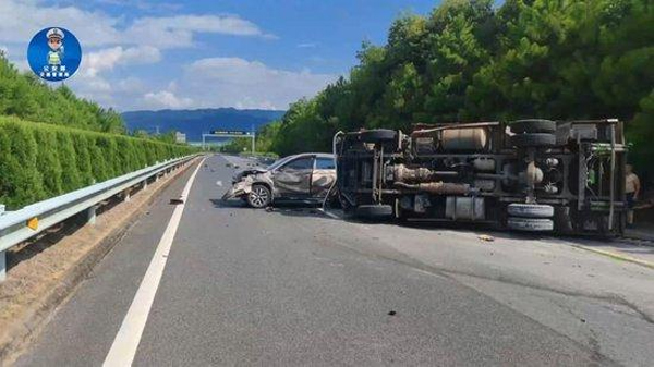 2025年8月5日早晨,泉南高速江西永新段,李某為超車貿(mào)然向左變道,未顧及快車道小車,瞬間引發(fā)連環(huán)碰撞。小車失控撞上慢車道貨車,致貨車側(cè)翻,李某的車也被砸中,現(xiàn)場一片混亂,所幸無人傷亡。
