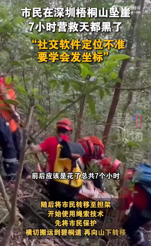 10 月 18 日中午,廣東深圳梧桐山發(fā)生驚險(xiǎn)一幕,一名男子墜崖骨折,其家人因不確定具體位置報(bào)警求助。救援隊(duì)迅速組織執(zhí)勤隊(duì)員上山,經(jīng) 7 小時(shí)緊急救援,成功將男子移送至 120 并送往醫(yī)院。
